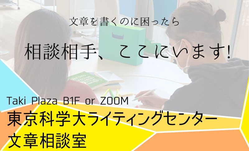 東京科学大学ライティングセンターは、文章課題について相談できる教育機関です。アカデミック・ライティングの訓練を受けたチューター(本学所属の大学院生)が書き手との対話を重ね、文章の改善を支援します。予約は下記からお願いします。